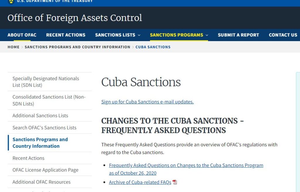 The U.S. Department of Commerce, through its Bureau of Industry and Security (“BIS”), and the U.S. Department of Treasury, through its Office of Foreign Assets Control (“OFAC”), have issued U.S. sanctions rules applicable to Cuba, published in the Federal Register.